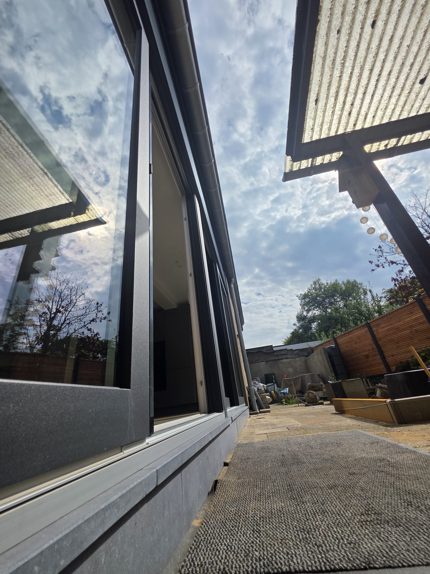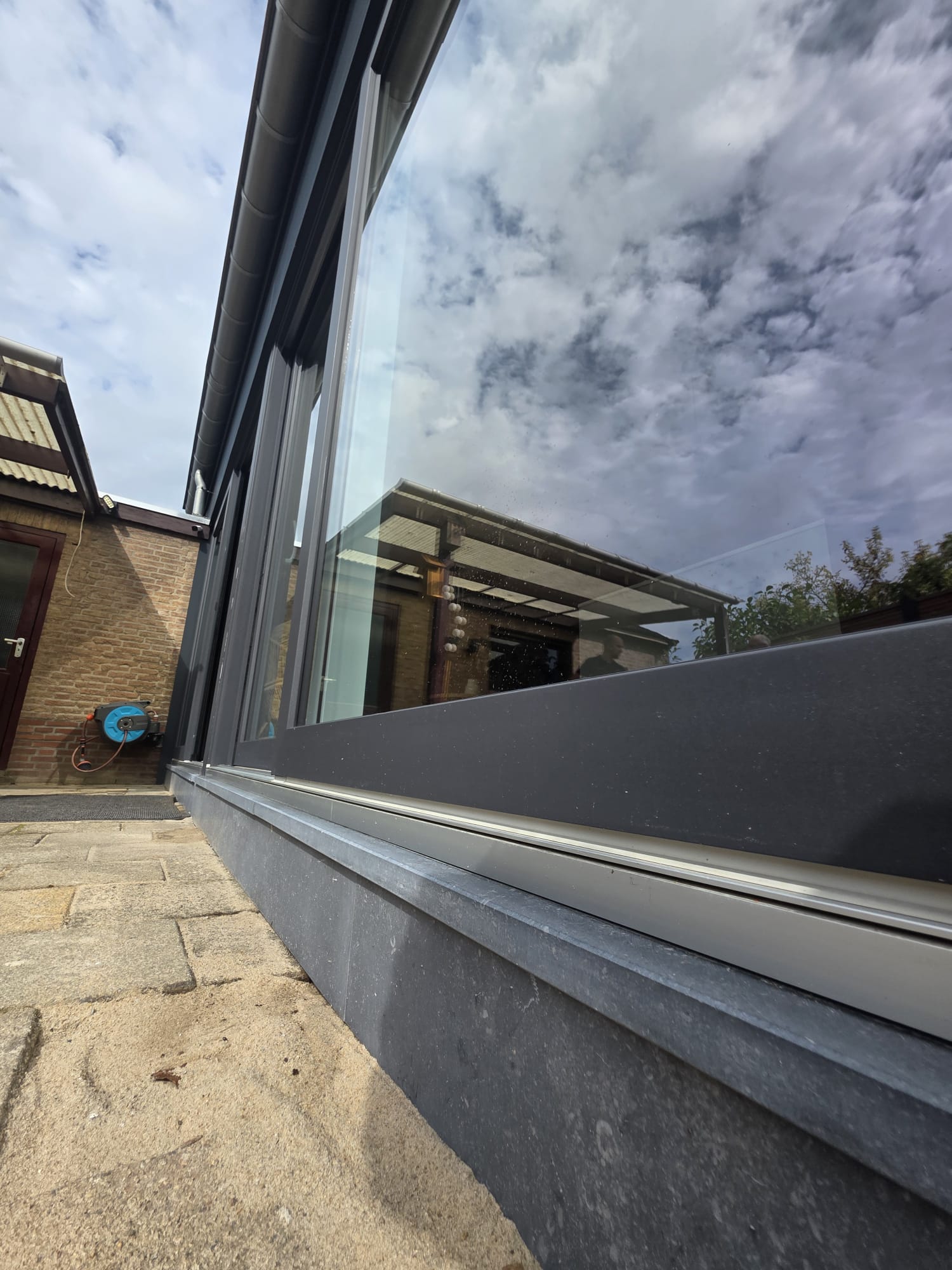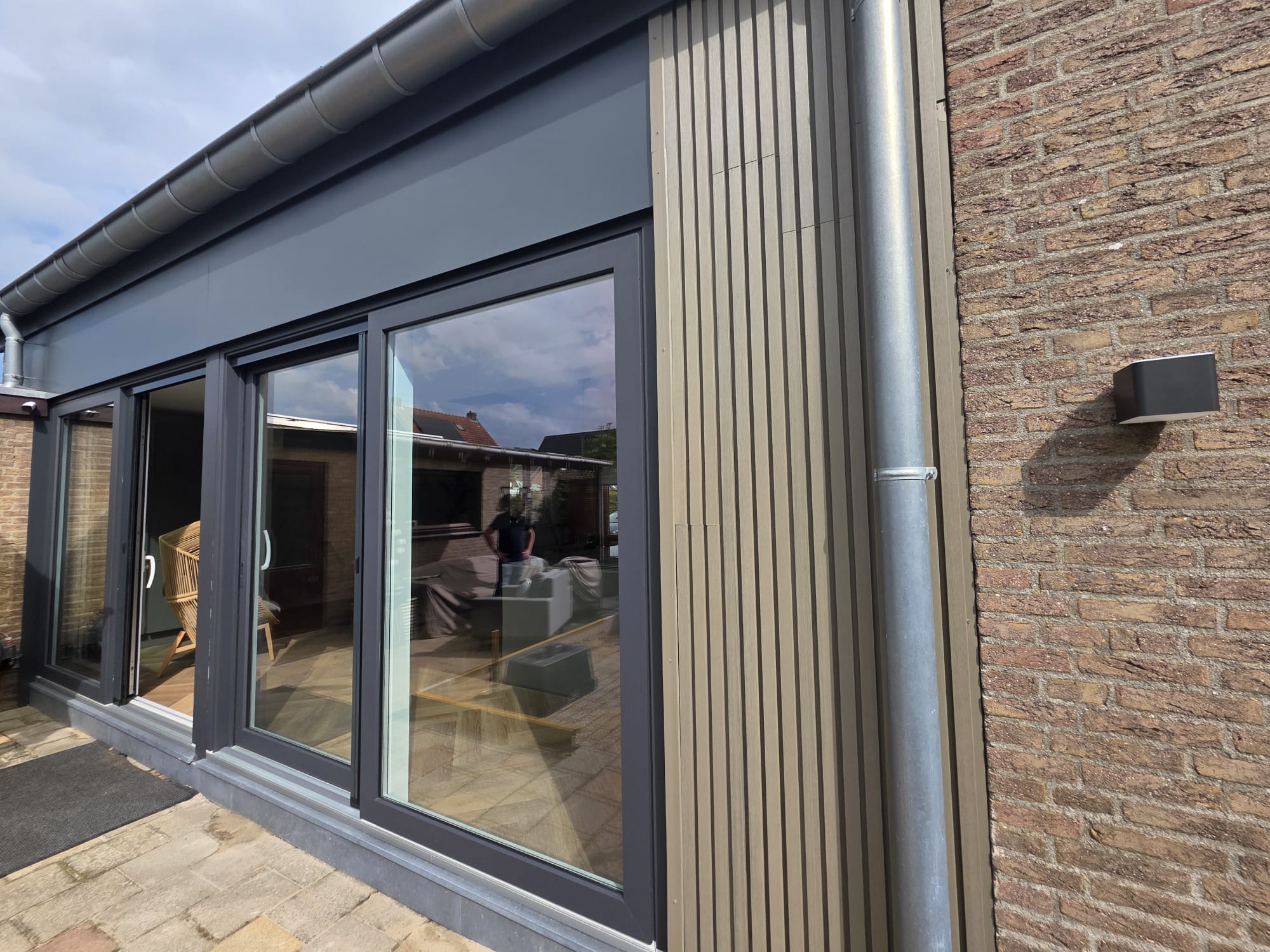 In deze woonplaats mochten we de gehele woning voorzien van antraciete kunststof kozijnen, deuren en puien.